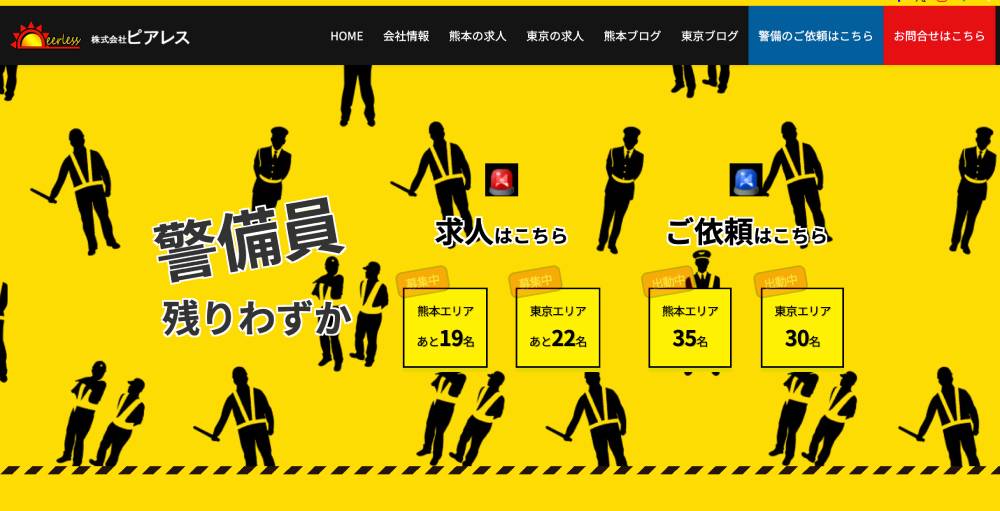 熊本・東京の各求人、警備依頼数を地区毎に件数を表示させる必要があったため、こちらはPHPを使用して実現しています。ベースはWordPressの有料テンプレートを使用し、そこから独自にカスタマイズしています。